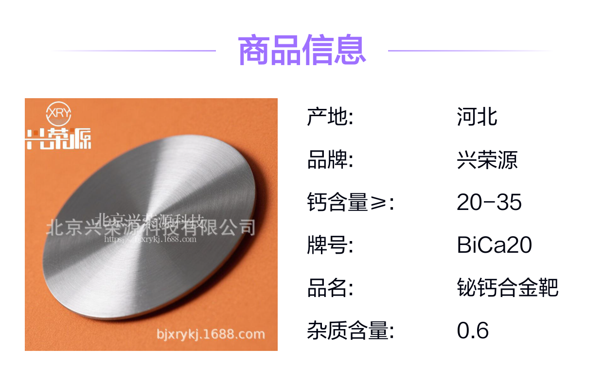 北京兴荣源科技有限公司依托雄厚的技术实力与完善的服务体系,致力于为客户提供高品质的铋钙合金靶和个性化解决方案,助力客户在材料研发和产业化中取得成功。