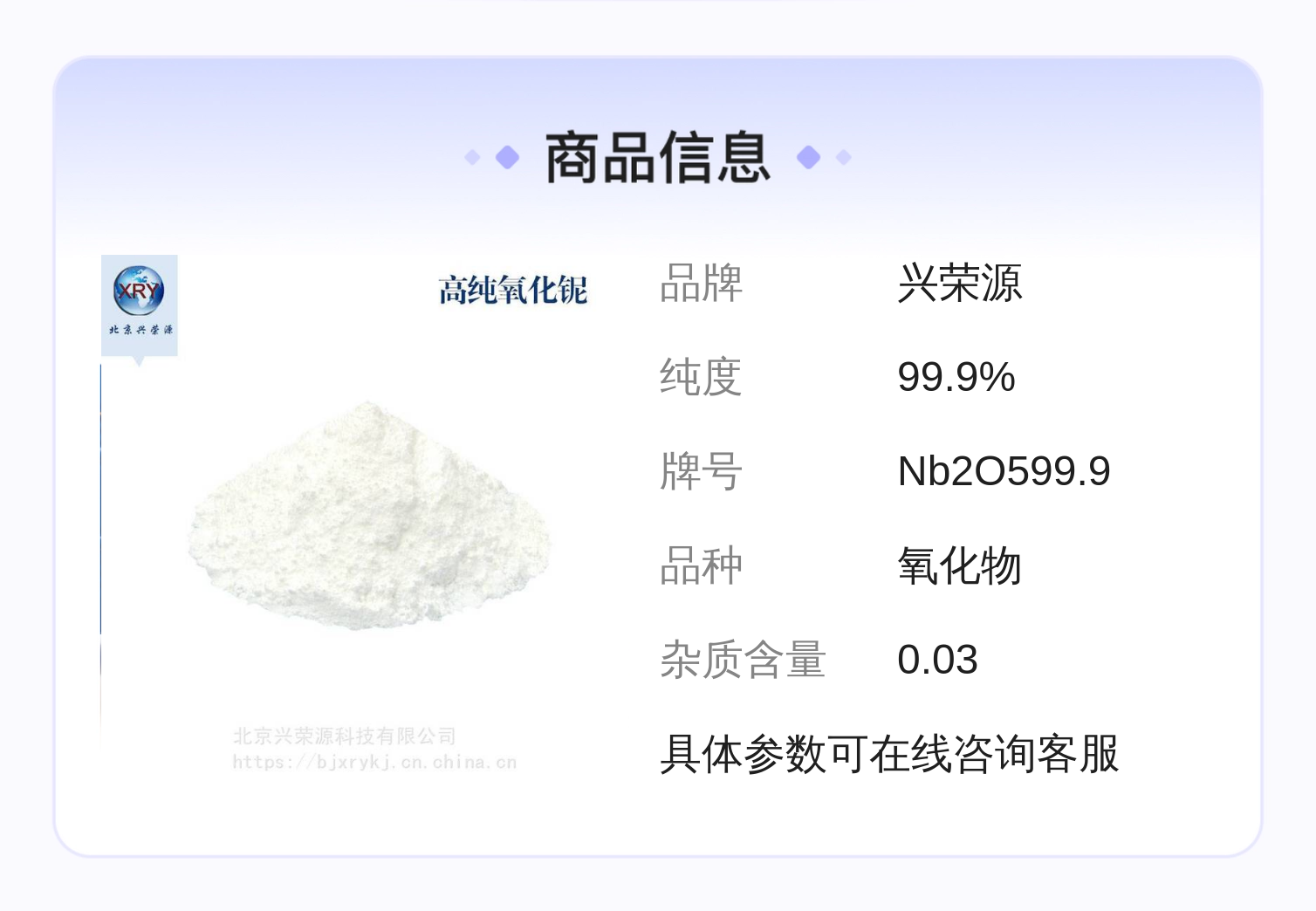 北京兴荣源科技有限公司通过严格的质量控制和先进的制造工艺,保证每批次球形氧化铌粉均符合高纯度要求,让客户无后顾之忧。