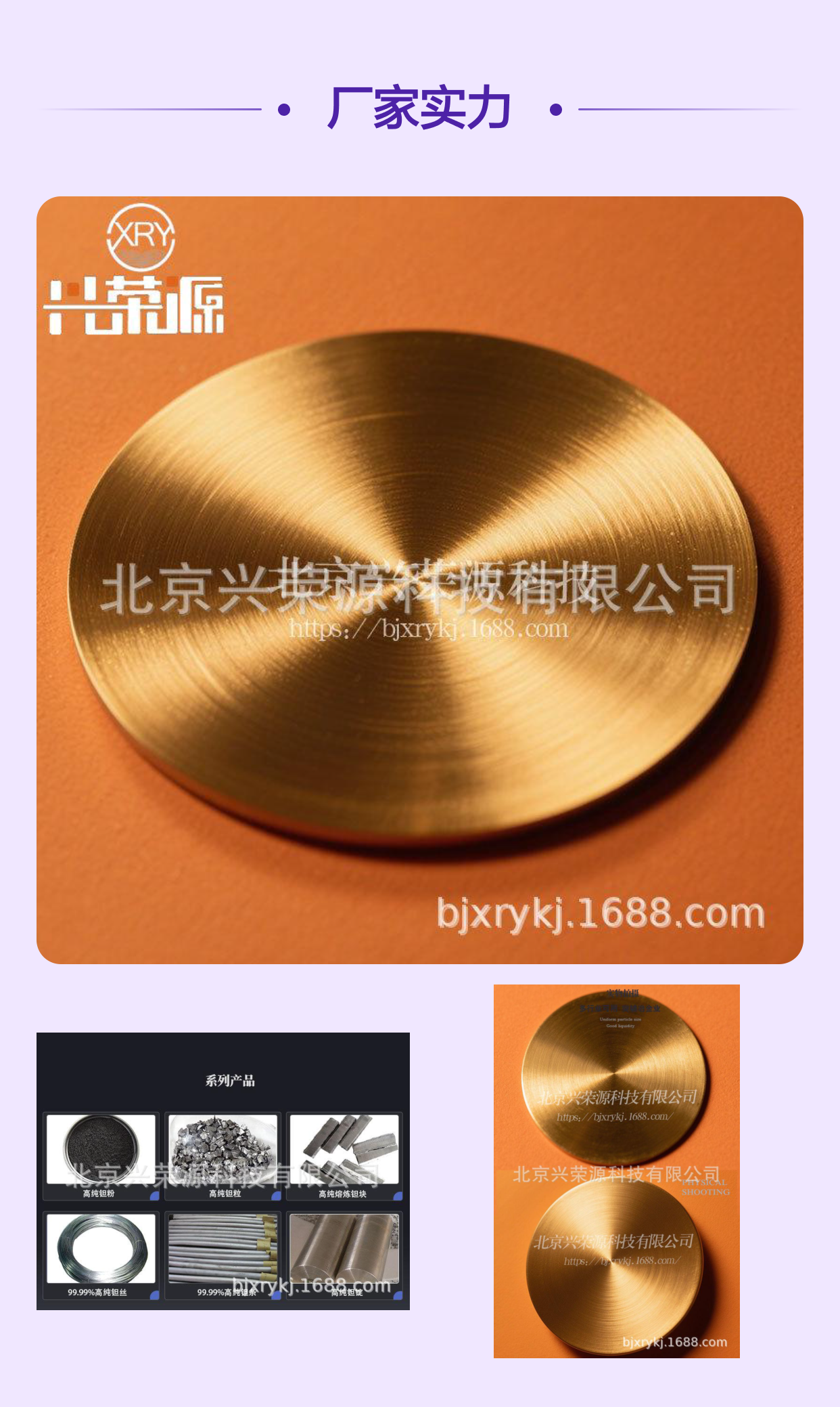 | 公司简介 | 北京兴荣源科技有限公司是一家集生产加工、经销批发的私营有限责任公司,金属粉末、稀有金属、稀土金属、金属、锡粉、铅粉、铝粉、钴粉、镍粉、银粉、铋粉、铜粉、铁粉、钛粉、锆粉、铌粉、铌铁、钒粉、铪粉、钼粉是北京兴荣源科技有限公司(销售部)的主营产品。北京兴荣源科技有限公司(销售部)是一家经国家相关部门批准注册的企业。北京兴荣源科技有限公司(销售部)以雄厚的实力、合理的价 ... | ||