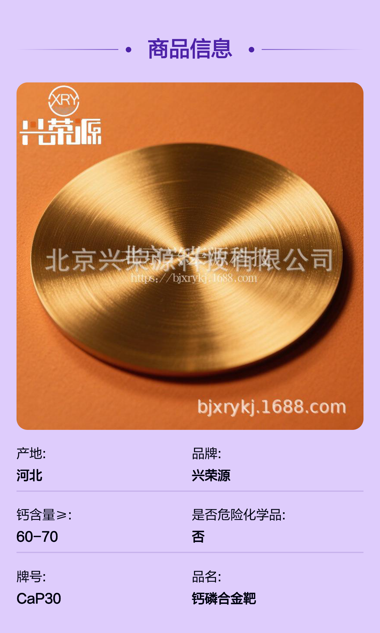 作为一家专注于钙磷合金靶研发和生产的企业,北京兴荣源科技有限公司具备丰富的行业经验和强大的技术实力。公司坚持严格的质量管理体系,从原材料选取、工艺控制到终端产品检测均达到guojibiaozhun。丰富的技术积累和客户反馈机制确保钙磷靶产品的持续优化,能够为客户提供定制化解决方案,满足多样化的需求。