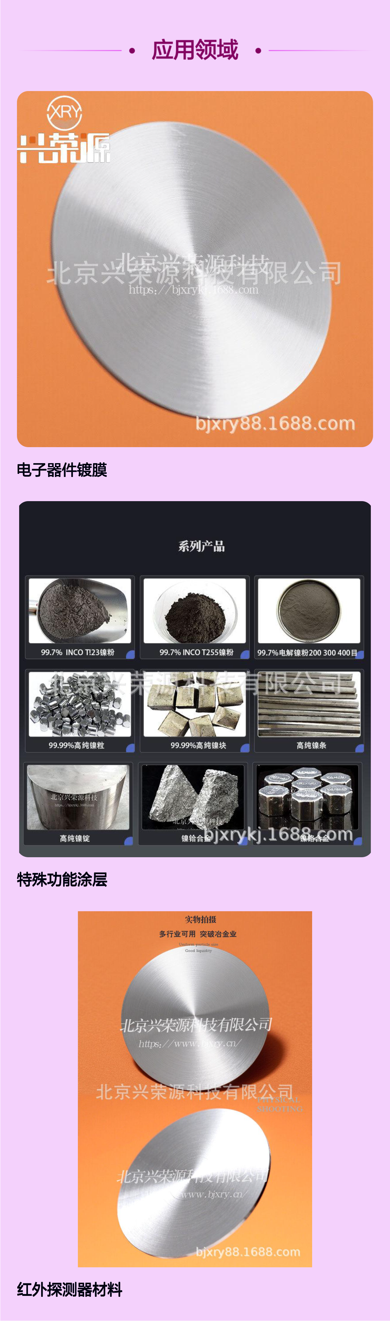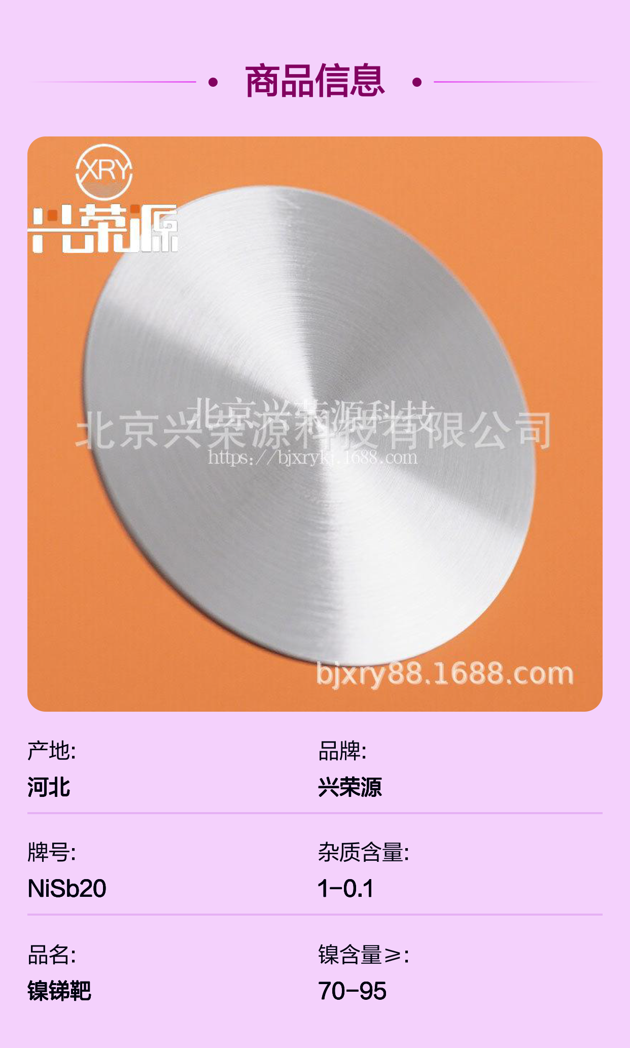 欲深入了解或采购镍锑合金靶产品,欢迎选择北京兴荣源科技有限公司,以专业技术和服务支持您的创新与发展。