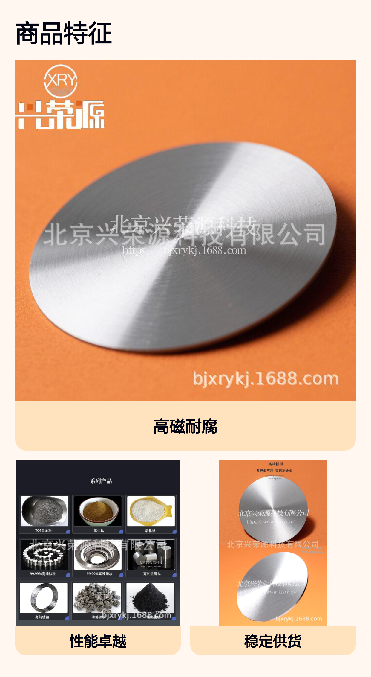 镍钇合金靶(NiY5、NiY30)以其出色的磁性能和耐腐蚀性,显著满足半导体及新能源领域对先进材料的严苛需求。北京兴荣源科技有限公司依靠深厚的技术积淀和完善的生产体系,欢迎各界客户咨询合作,携手推动产业升级与科技进步。