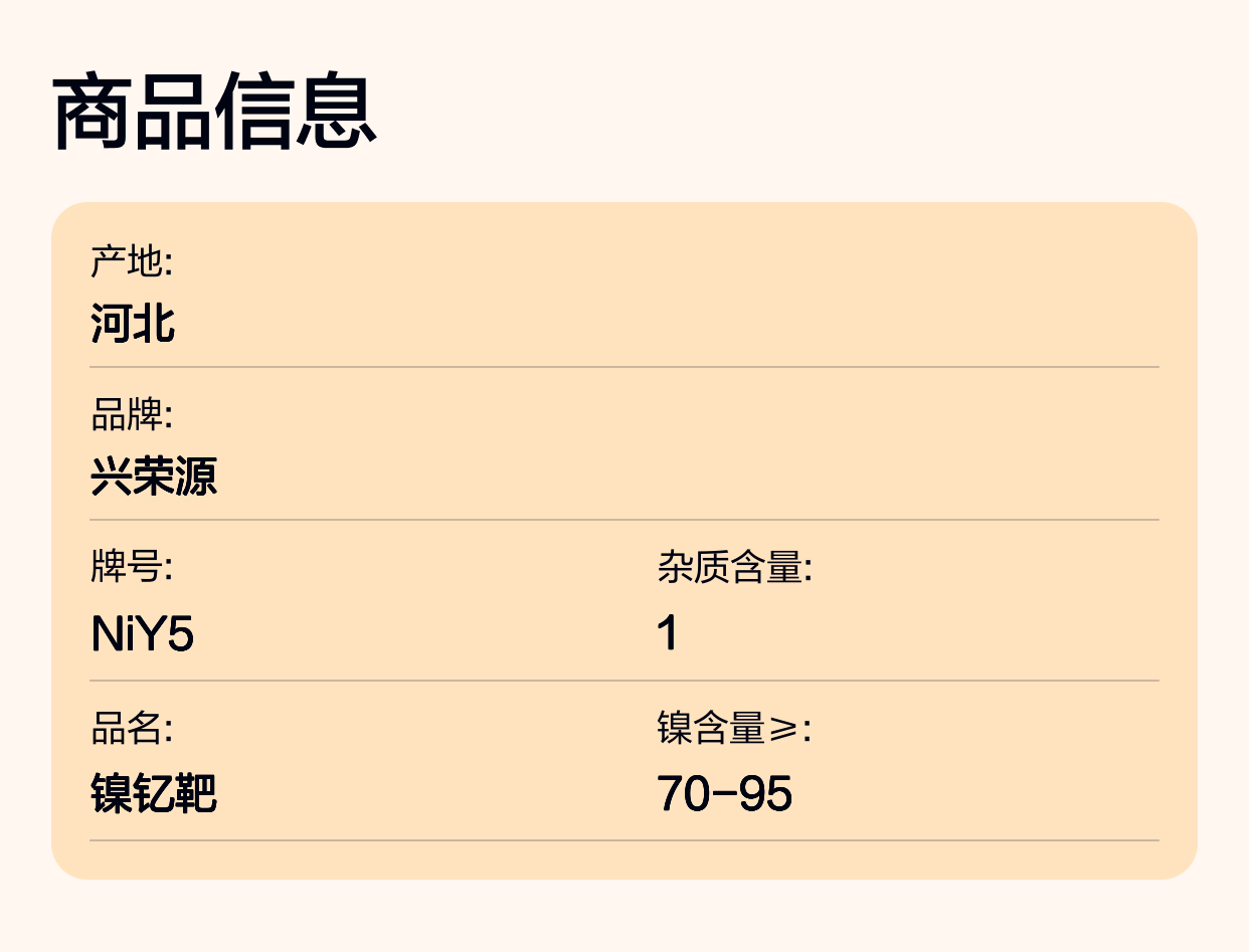 选择北京兴荣源科技有限公司的镍钇合金靶,客户不仅获得性能优良的材料,还能享受到优质的技术支持和售后服务,提升产品研发效率和市场竞争力。