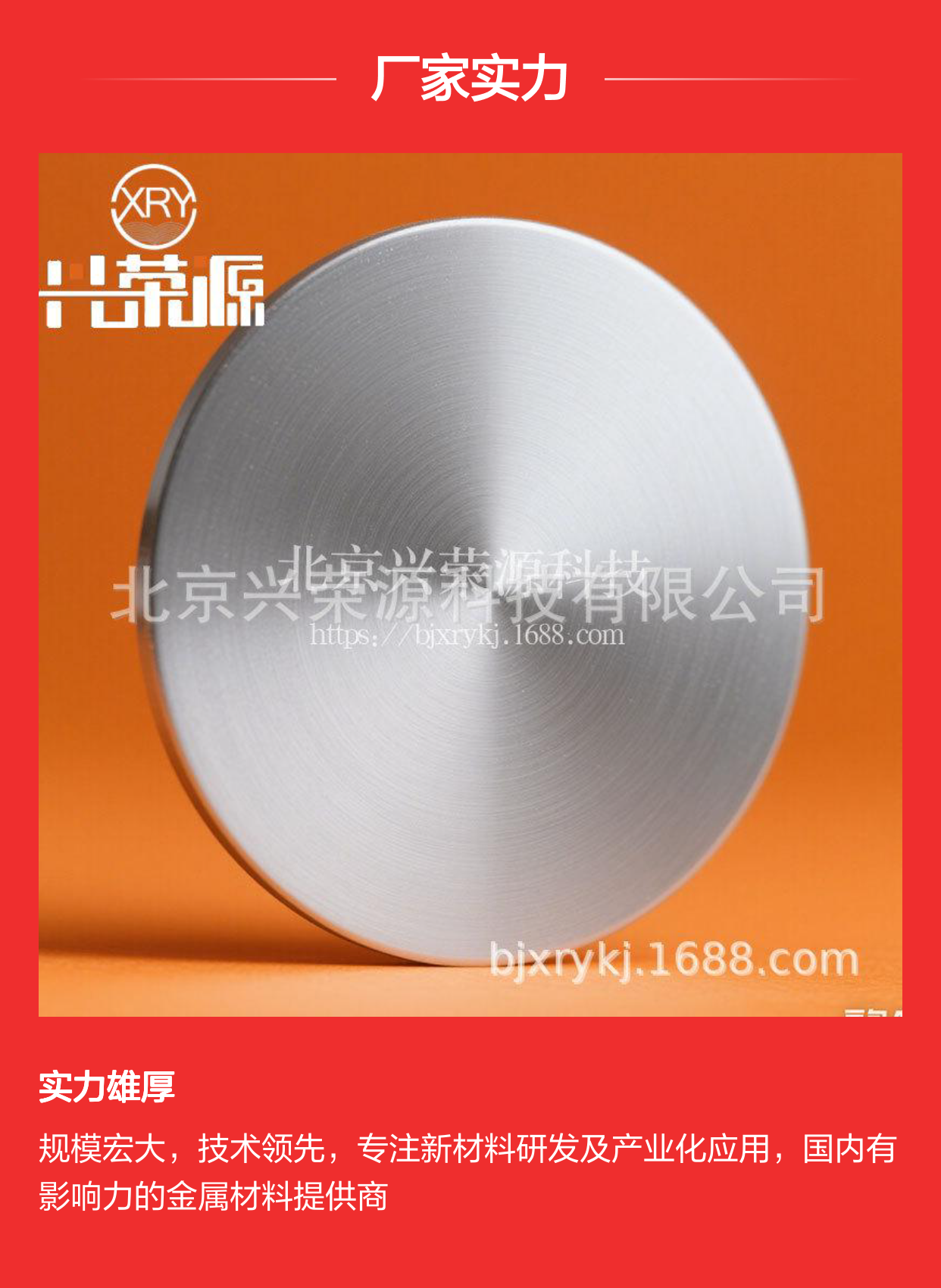 镓硅靶以其良好的导电性和热稳定性能,成为各类高端电子材料制备的重要原料。GaSi20和GaSi40各具特色,满足不同的工艺需求。北京兴荣源科技有限公司凭借其丰富的研发经验和严谨的生产管理,提供品质优良的镓硅合金靶,助力客户提升产品质量与制造效率。