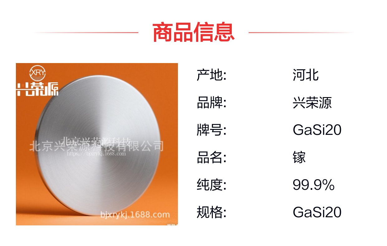 这些应用对材料的导电性和热稳定性能提出了严格要求。北京兴荣源科技有限公司生产的镓硅合金靶,通过高纯度原材料和严格的工艺控制,确保了靶材的一致性和稳定性,为终端产品的性能提升提供了坚实基础。