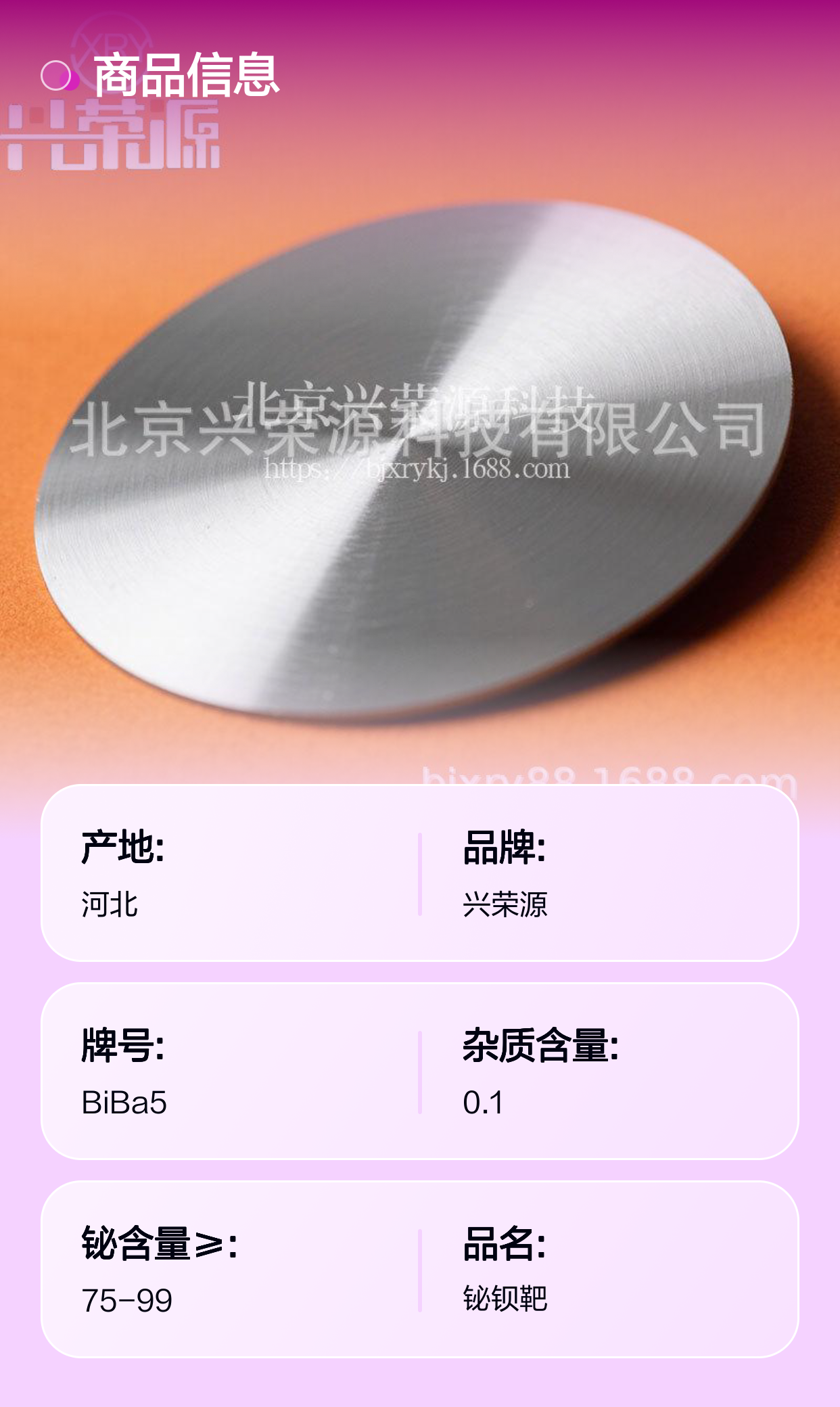 欢迎更多科研机构和生产厂家与北京兴荣源科技有限公司合作,共同探索铋钡合金靶在超导材料和光电领域的更多可能性。